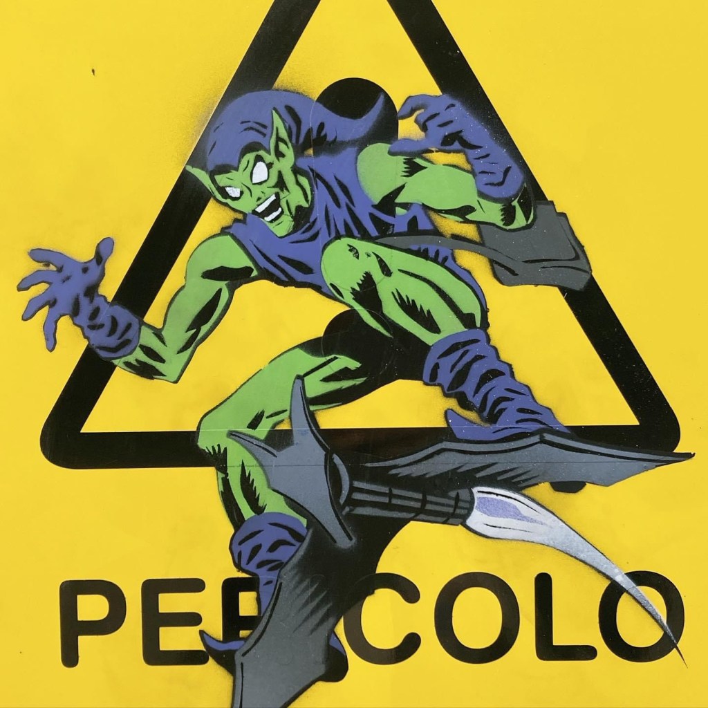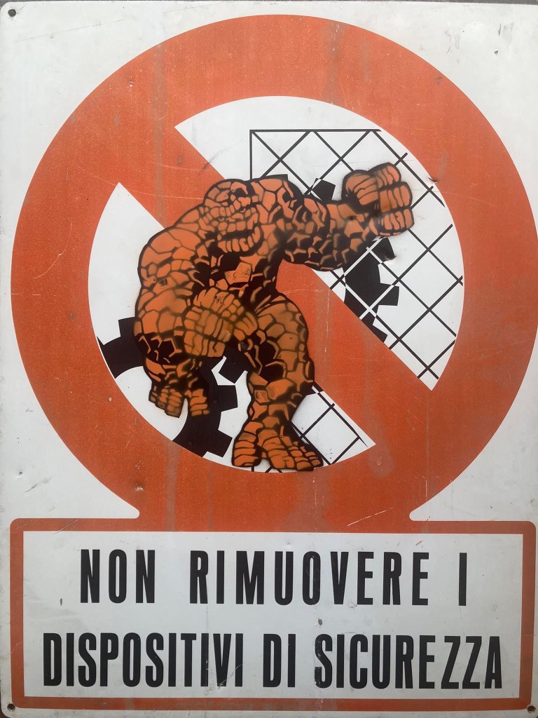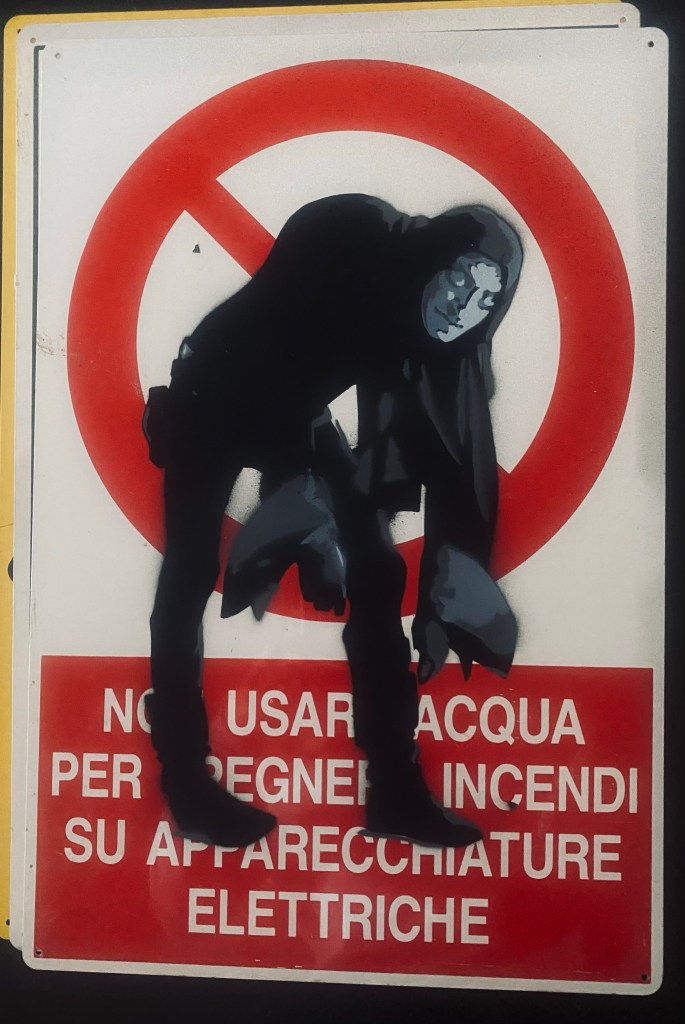 Cartelli nuovi o malconci customizzati con mascherine realizzate a mano e bombolette